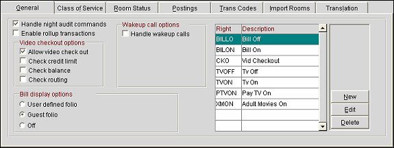 The Interface Rights Grid appears on the General tab for all interface types. The Grid displays the interface rights (permissions) configured for the interface. Only the interface rights that are configured here will appear on the Interface menu (Shift+F8 Quick keys option)