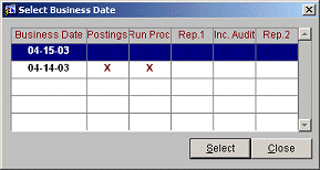 Choosing any date will display the Cashier Login screen. Any open date can be worked on, but days must be closed in chronological order. In working on a date, only the transactions associated with that date can be audited.