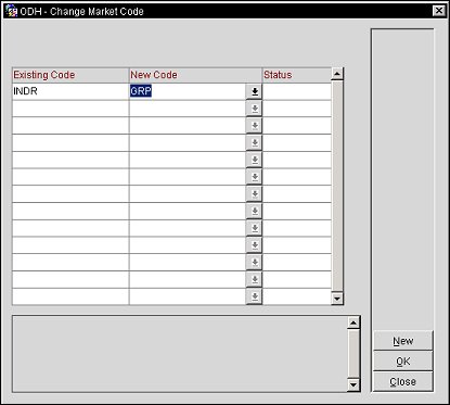 Existing Code. After selecting the New button, choose the existing market codes to be updated from the multi-select list of values.