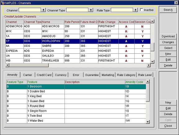 Channel. The channel in which the amenity code will be available. This field will auto-populate with the channel highlighted in the top grid. You can also select or enter a different channel.