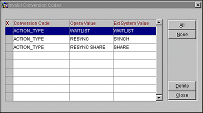 All. Select all conversion codes from which to copy the OPERA values into OXI.
