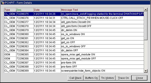 When the screen is first displayed, the grid will not display any trace details. To initiate the trace, press the CTRL and ALT keys and click the Call Stack button. The following message will be displayed to notify the user that the trace has been started.
