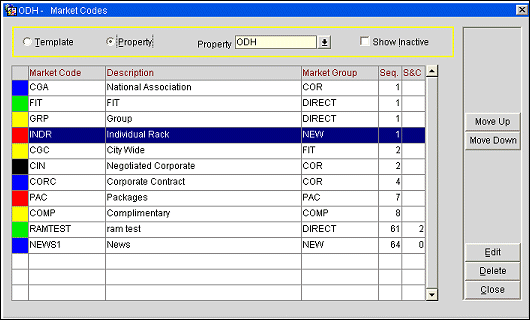 Show Inactive. Select this check box to display inactive market codes. Inactive market codes are not currently available for selection from the OPERA screens, although they remain in the database because they may be attached to reservations or other system entities.