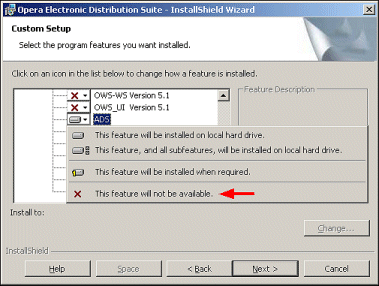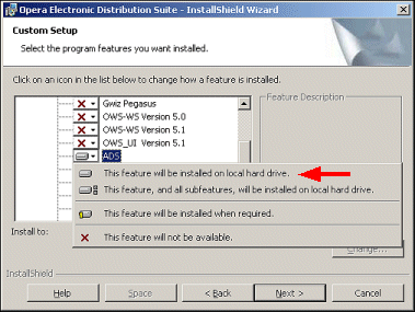 1. Run the OEDS InstallShield Wizard and access the Custom Setup screen.