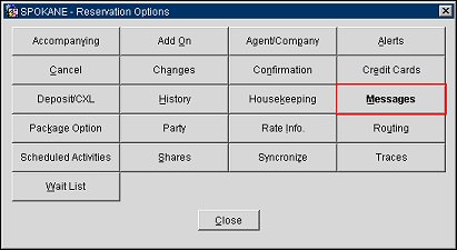On any of the available screens, users can use the keystrokes ALT + T to open the Options menu. The Options Menu displays. Or, type ALT + T and the first three letters of a screen you are trying to access. For instance, if you wanted to access the Messages screen using this method, you would use the keystrokes ALT + T + MES. The Options menu now displays with the Messages button pre- selected.