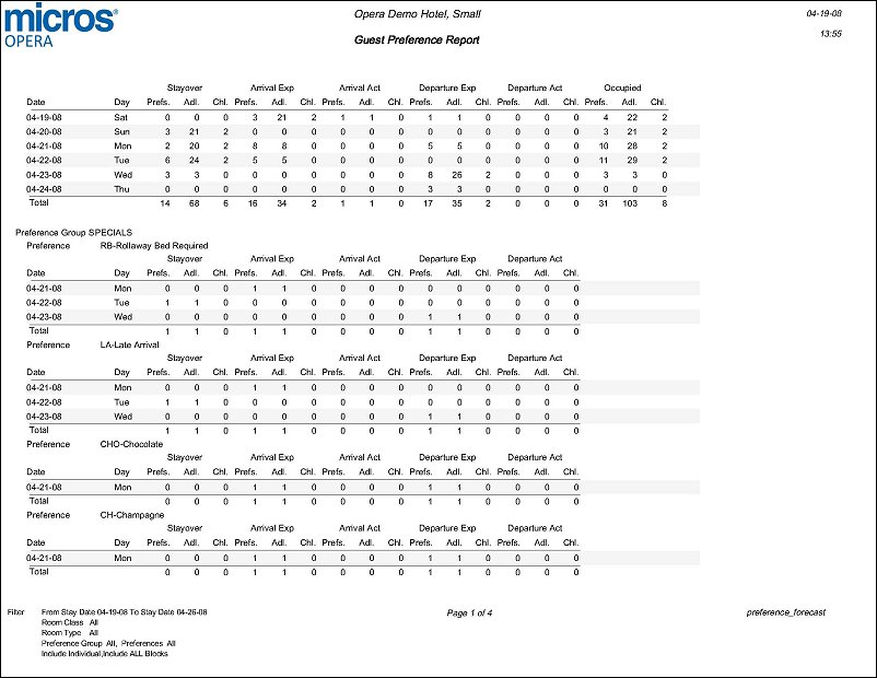 Guest Preference Report (preference_forecast with FOR13.FMX)