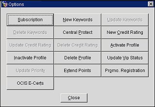 VIP Status. Select the VIP Code/Descriptions for the profiles you want to filter. (The VIP Status can also be updated for the profile set. Select the VIP Status here and the Options button to update. See Options Screen Description/Update VIP Status below.)