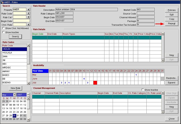 - Repeat channel rate management. Select this check box to repeat channel rate management information to other properties.