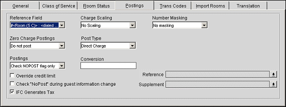 Reference Field. Select the value you would like to see entered in the Reference field for postings. This field allows you to provide additional information about the charge. When the IFC>Swap Reference and Supplement application parameter is set to Y and a value exists in the Reference field, any interface posting's will have the information selected in this field displayed under the Supplement column. Depending on the how the default folio is setup it will either display supplement or reference field information on it. Switching this parameter will make the posted charge have different data in the different fields and will display differently on the billing screen as well as the folio.