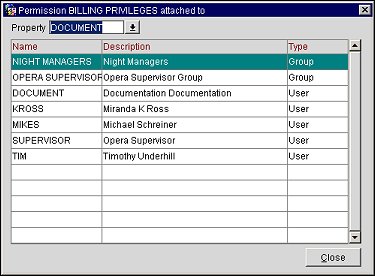Note: Users who are not members of the OPERA Supervisors Group cannot view grantees of that group.