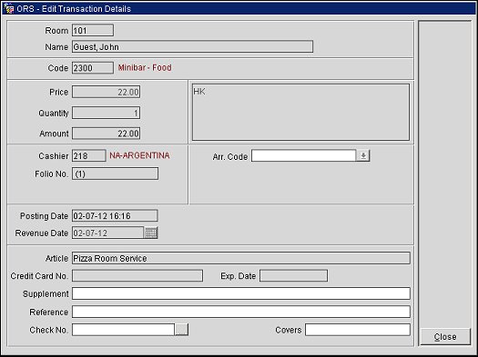 Select the Close button to close the Edit Transaction Details screen and return to the Billing screen.